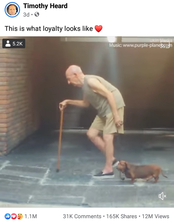This video was shared by Timothy Heard – Timothy Heard’s VIDEO – old man and the dog. It was shared yesterday and in less than 24 hours, it garnered millions of views. See why this video of a dog and an old man was tagged as an example of royalty.