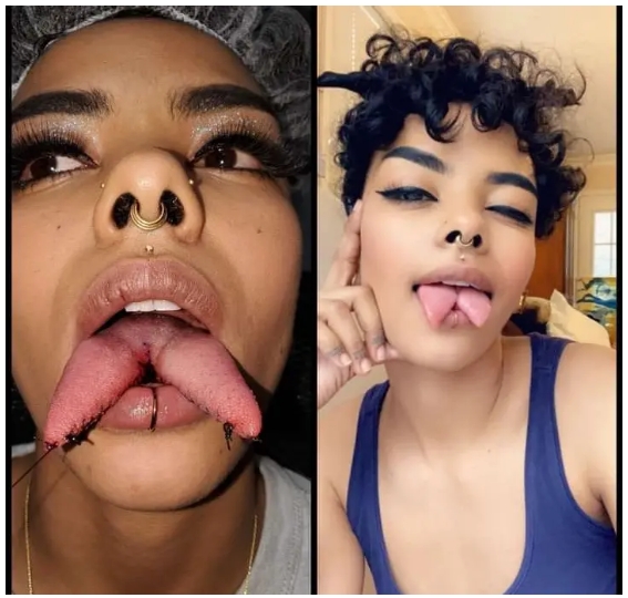 She splits her tongue into two just to look different. A human being woke up from bed one morning, what she wanted was to have her tongue split with scissors and had them sewed apart.