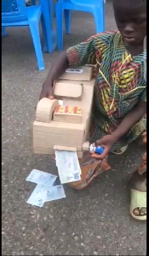 The photos of a little boy who has constructed a dispensable ATM Machine using a carton are going viral on the internet. It is not just one of those constructions with paper works, he went beyond paperwork.