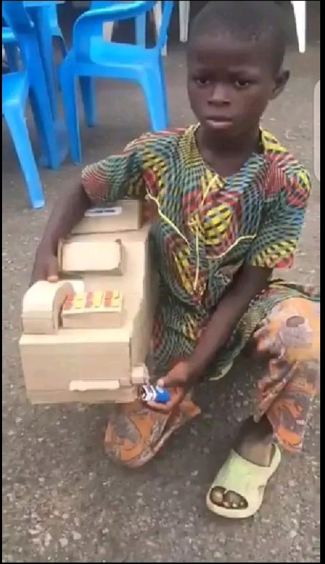 See why the Photos of this little boy are going viral. He is the First Igbo Boy Who Constructed Dispensable ATM Machine.