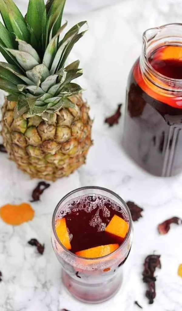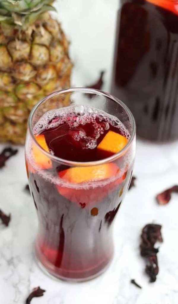 Zobo or sorrel drink goes well with a snack or on its own. Enjoy it with your meals too.