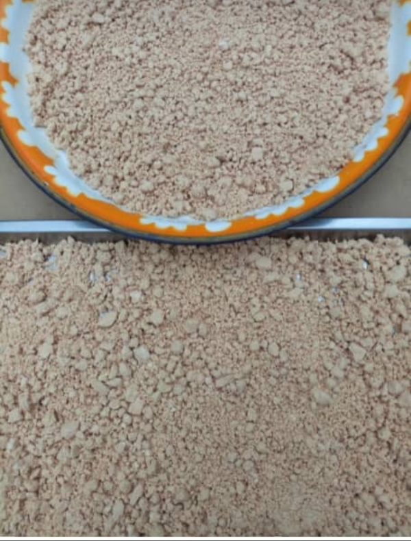 Get the drained pap and break it into tiny bits or pieces. This act is to get it ready for drying.