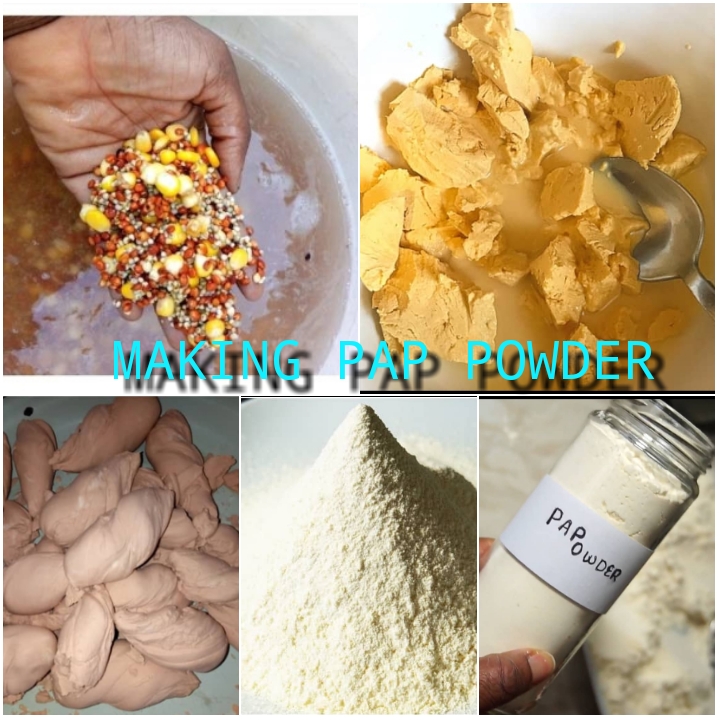 Turning your moist pap into powder and canning it helps in its preservation and can also make it easy to be carried about.